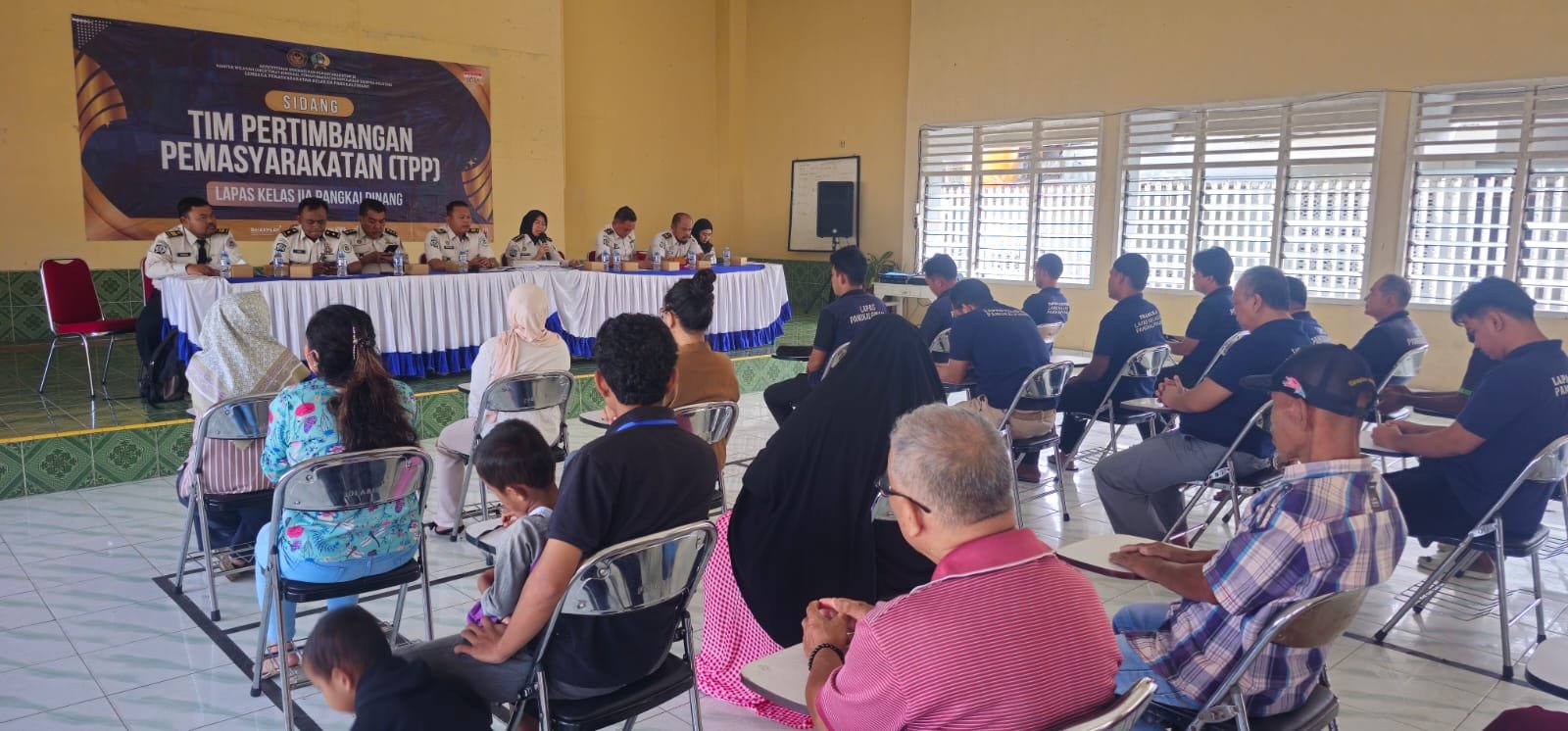 Sidang TPP ini diikuti oleh anggota sidang, Pembimbing Kemasyarakatan Bapas Kelas I Pangkalpinang, serta keluarga Warga Binaan selaku penjamin. Lapas Pangkalpinang berkomitmen mendorong pembinaan kemandirian dan integrasi secara berkelanjutan sebagai bekal Warga Binaan menuju reintegrasi sosial. (kp)