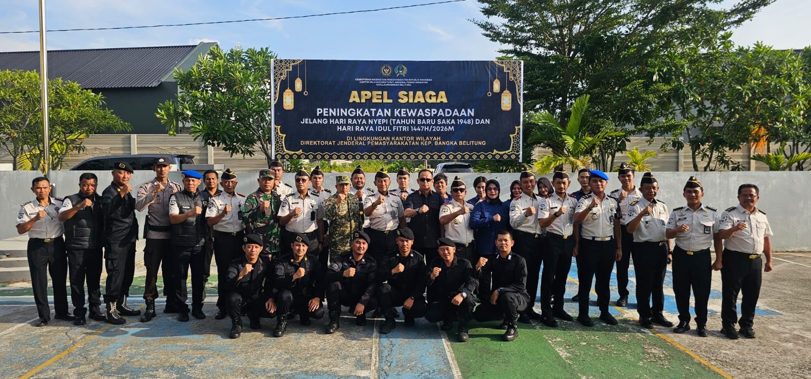 Dengarkan BeritaPangkalpinang, INFO_PAS – Menjelang perayaan Hari Raya Nyepi dan Idul Fitri Tahun 2026, petugas Lembaga Pemasyarakatan (Lapas) Kelas IIA Pangkalpinang memperkuat kewaspadaan dan kesiapsiagaan dalam menjaga keamanan dan ketertiban (Kamtib). Hal ini diwujudkan melalui keikutsertaan jajaran Pengamanan Lapas Pangkalpinang dalam kegiatan Apel Bersama Peningkatan Kewaspadaan Menjelang Hari Raya Nyepi dan Idul Fitri 2026 yang digelar di Kantor Wilayah (Kanwil) Direktorat Jenderal Pemasyarakatan (Ditjenpas) Kepulauan Bangka Belitung, Rabu (11/3) sore.