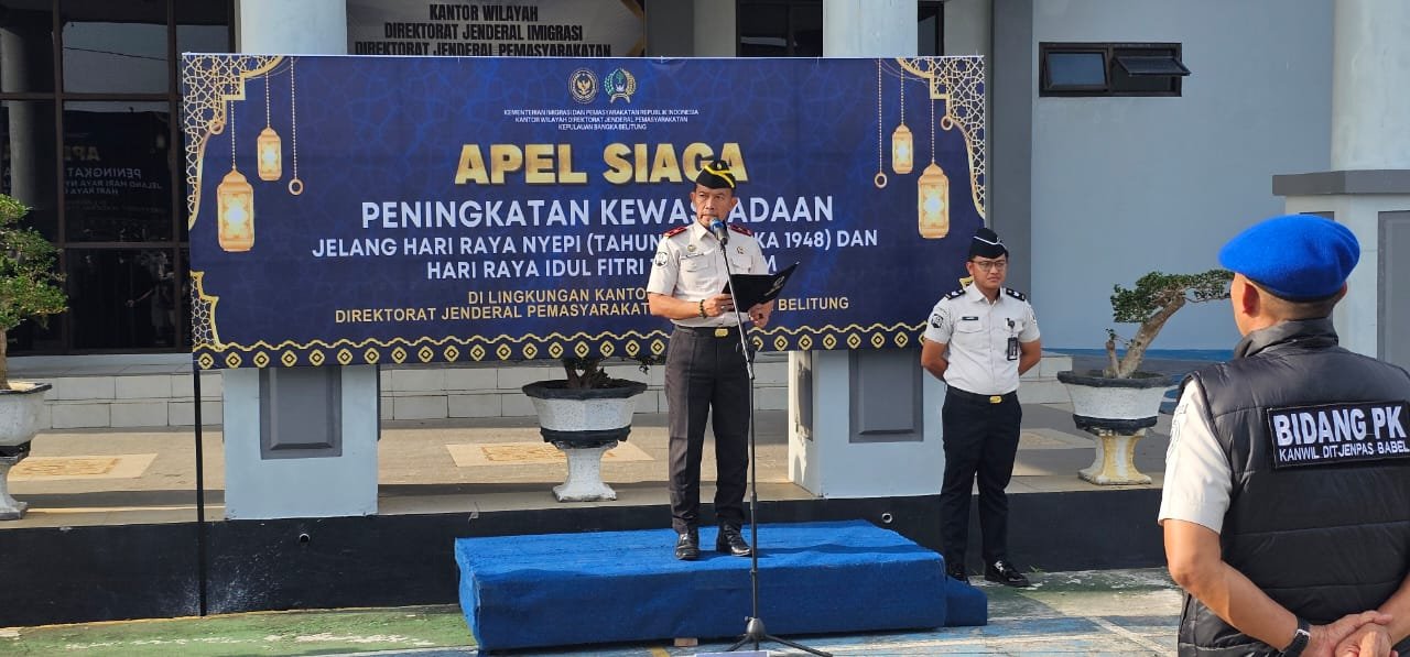 Dalam sambutannya, Pelaksana Tugas Kepala Kanwil Ditjenpas Kepulauan Bangka Belitung, Gunawan Sutrisnadi menegaskan pentingnya meningkatkan kewaspadaan menjelang cuti bersama dan cuti tahunan Hari Raya Nyepi bagi umat Hindu serta Idul Fitri bagi umat Islam.