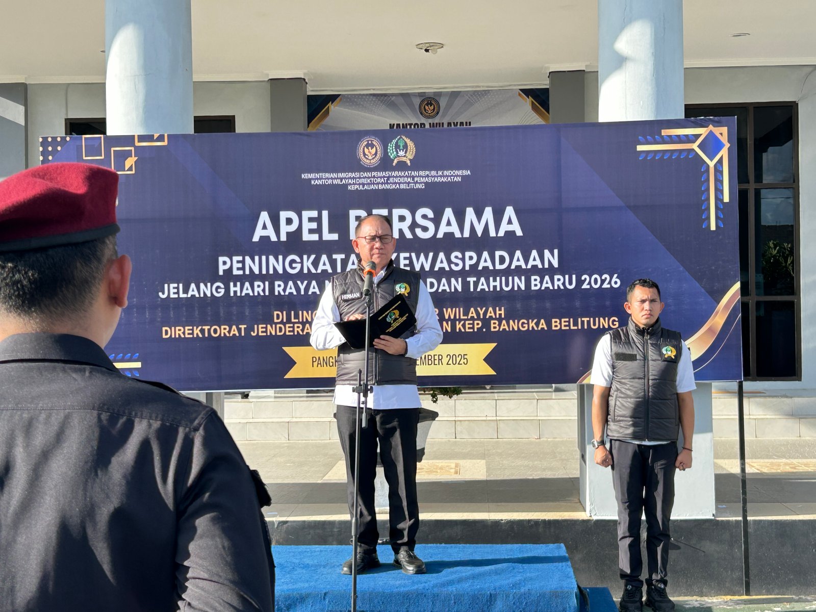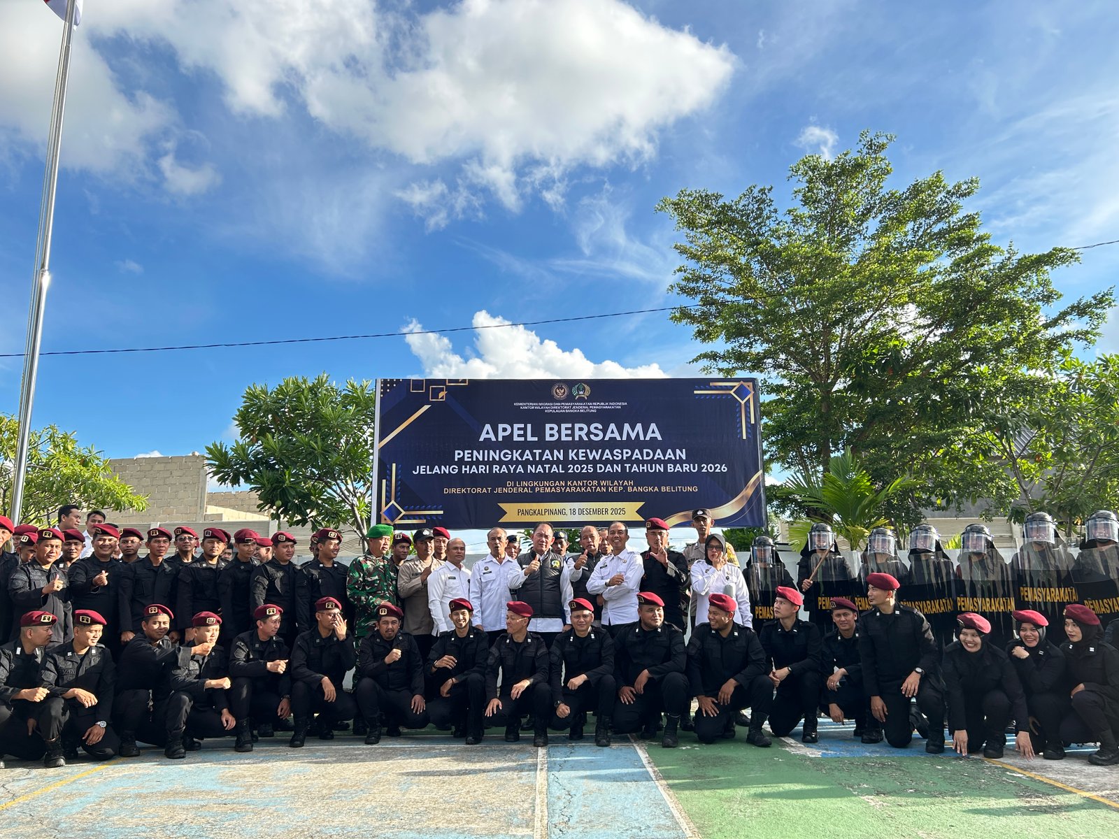 Pangkalpinang, Info_Pas- Menjelang perayaan Hari Natal dan Tahun Baru (Nataru) 2025/2026, Kantor Wilayah Direktorat Jenderal Pemasyarakatan Kepulauan Bangka Belitung menggelar Apel Siaga Peningkatan Kewaspadaan bersama seluruh Unit Pelaksana Teknis Pemasyarakatan dan Stakeholder terkait, Kamis (18/12).
