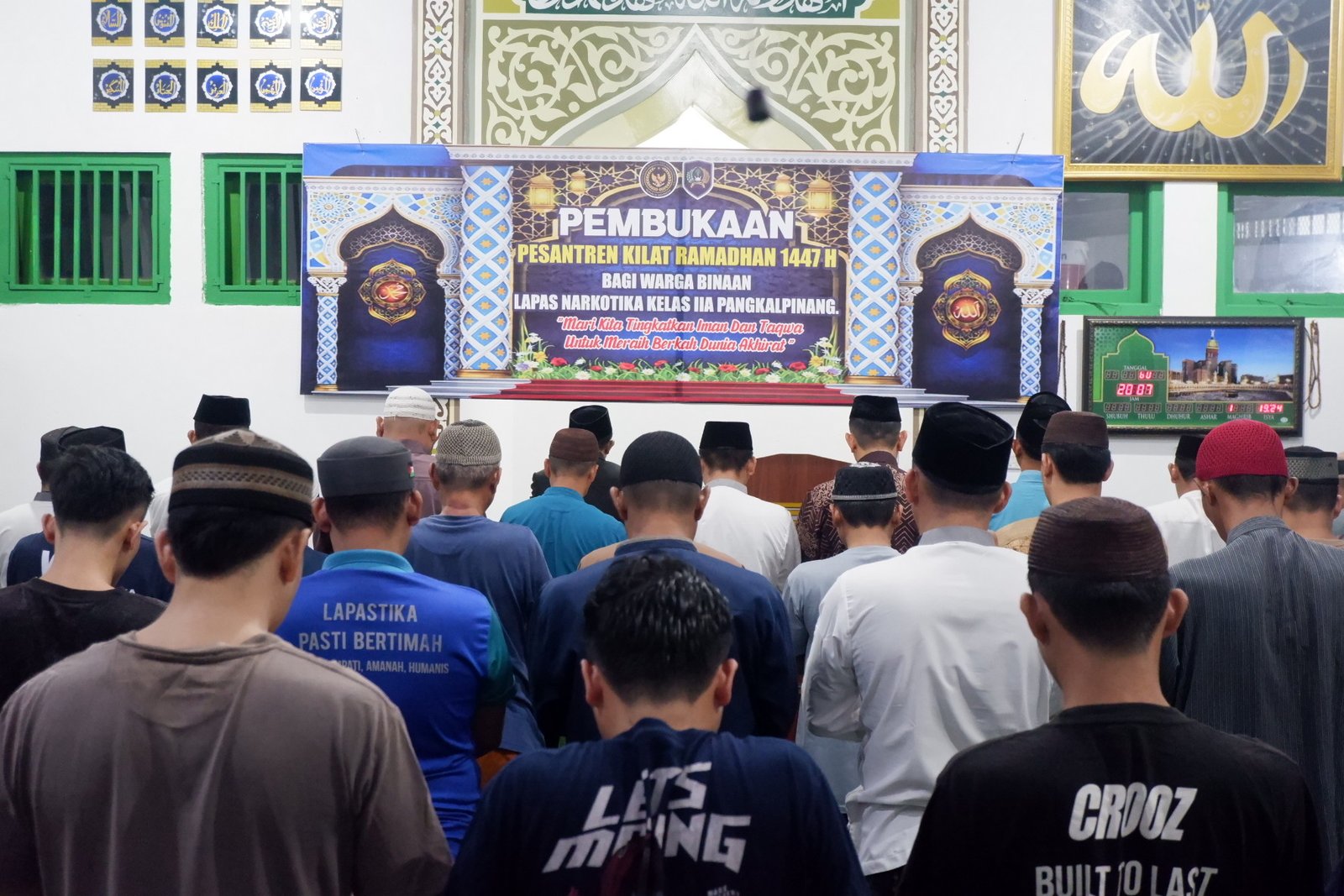 Pangkalpinang, INFO_PAS - Lapas Narkotika Kelas IIA Pangkalpinang resmi membuka kegiatan Pesantren Kilat Ramadan 1447 H pada Rabu (25/02) di Masjid Darut Taubah Lapas Narkotika Pangkalpinang. Kegiatan ini menjadi bagian dari program pembinaan kepribadian di bidang kerohanian Islam bagi warga binaan selama bulan suci Ramadan.