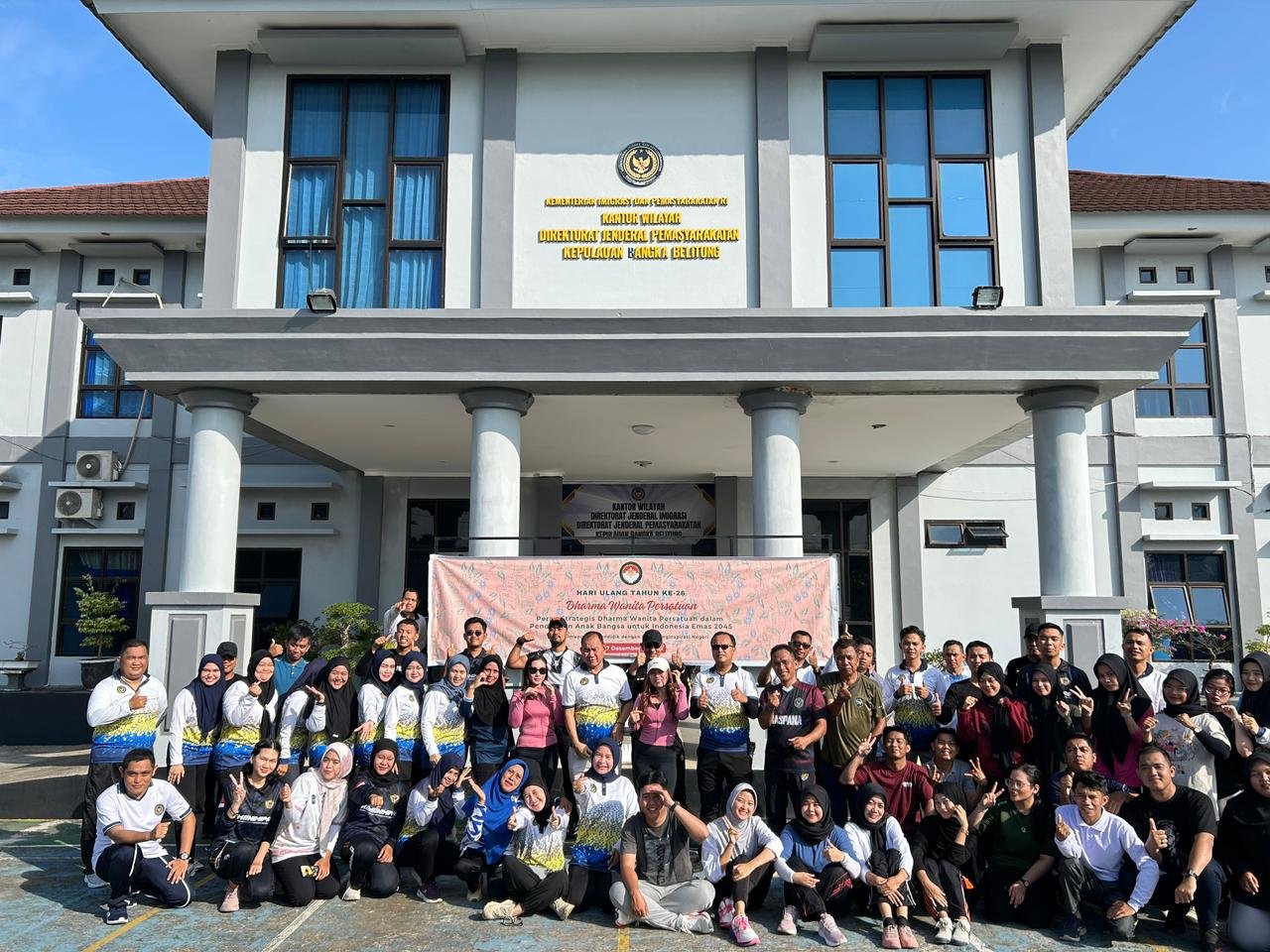 Pangkalpinang, Info_pas —Kantor Wilayah Direktorat Jenderal Pemasyarakatan Kepulauan Bangka Belitung melaksanakan kegiatan senam pagi bersama sebagai bentuk upaya menegakkan budaya hidup sehat di lingkungan kerja. Kegiatan berlangsung pada Jumat (12/12) pukul 07.30 WIB bertempat di halaman Kantor Wilayah Ditjen Pemasyarakatan Babel dan diikuti dengan antusias oleh seluruh jajaran pegawai.