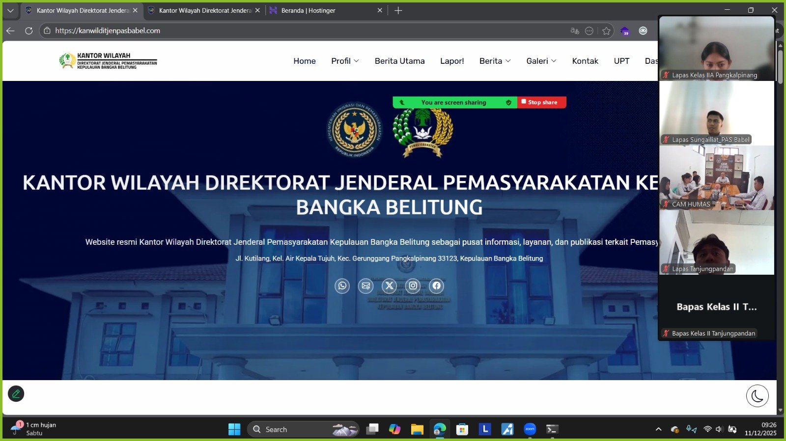 Pangkalpinang, Info_pas— Kantor Wilayah Direktorat Jenderal Pemasyarakatan Kepulauan Bangka Belitung melaksanakan kegiatan Sosialisasi Bimbingan Teknis Unggah Pemberitaan pada Website Kanwil Babel di kanwilditjenpas.com. Kegiatan dilaksanakan secara virtual melalui platform Zoom dari Ruang Kerja Kanwil Ditjenpas Babel pada Kamis (11/12) pukul 09.00 WIB hingga selesai.